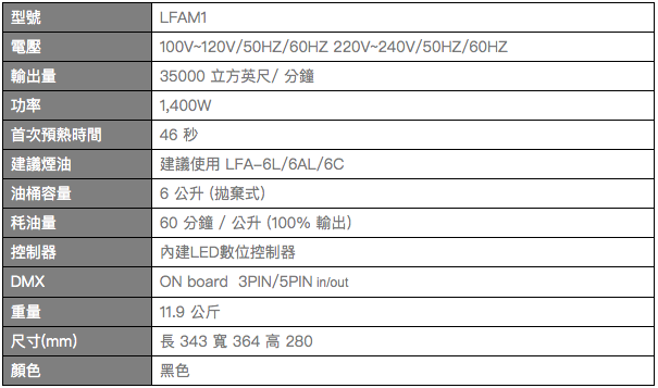 強勁的渦輪風扇可將煙霧送至任何大小舞台場地